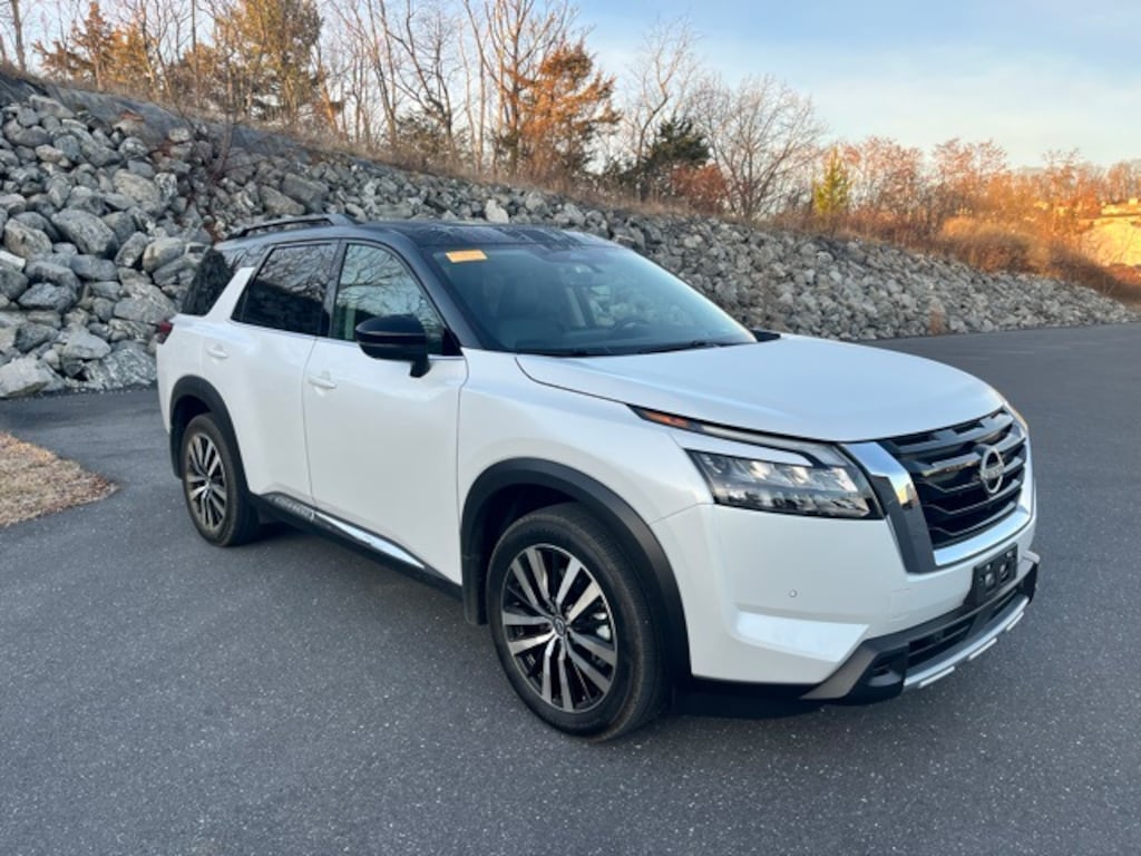 *NISSAN CERTIFIED*, *BACKUP CAMERA*, *BLUETOOTH*, *HEATED LEATHER SEATS*, *NAVIGATION*, *ONE OWNER*, *RECENT TRADE IN*, *SIRIUS XM*, *MOONROOF*, *THIRD ROW SEATING*, *ADAPTIVE CRUISE CONTROL*, *APPLE CARPLAY/ANDROID AUTO*, *LANE DEPARTURE WARNING*, *REMOTE START*, *SIDE BLIND ZONE ALERT/BLIND SPOT*, HEATED STEERING WHEEL, Pathfinder Platinum, 4D Sport Utility, 3.5L V6 DOHC, 9-Speed Automatic, 4WD, Everest White Pearl/Black, Charcoal w/Leather-Appointed Seating Surfaces, 2nd-Row Captain Chairs, 2nd-Row Rear Headrest, Cargo Area Protector, Cargo Net, Cargo Package, First Aid, Platinum Captain Chairs Package.